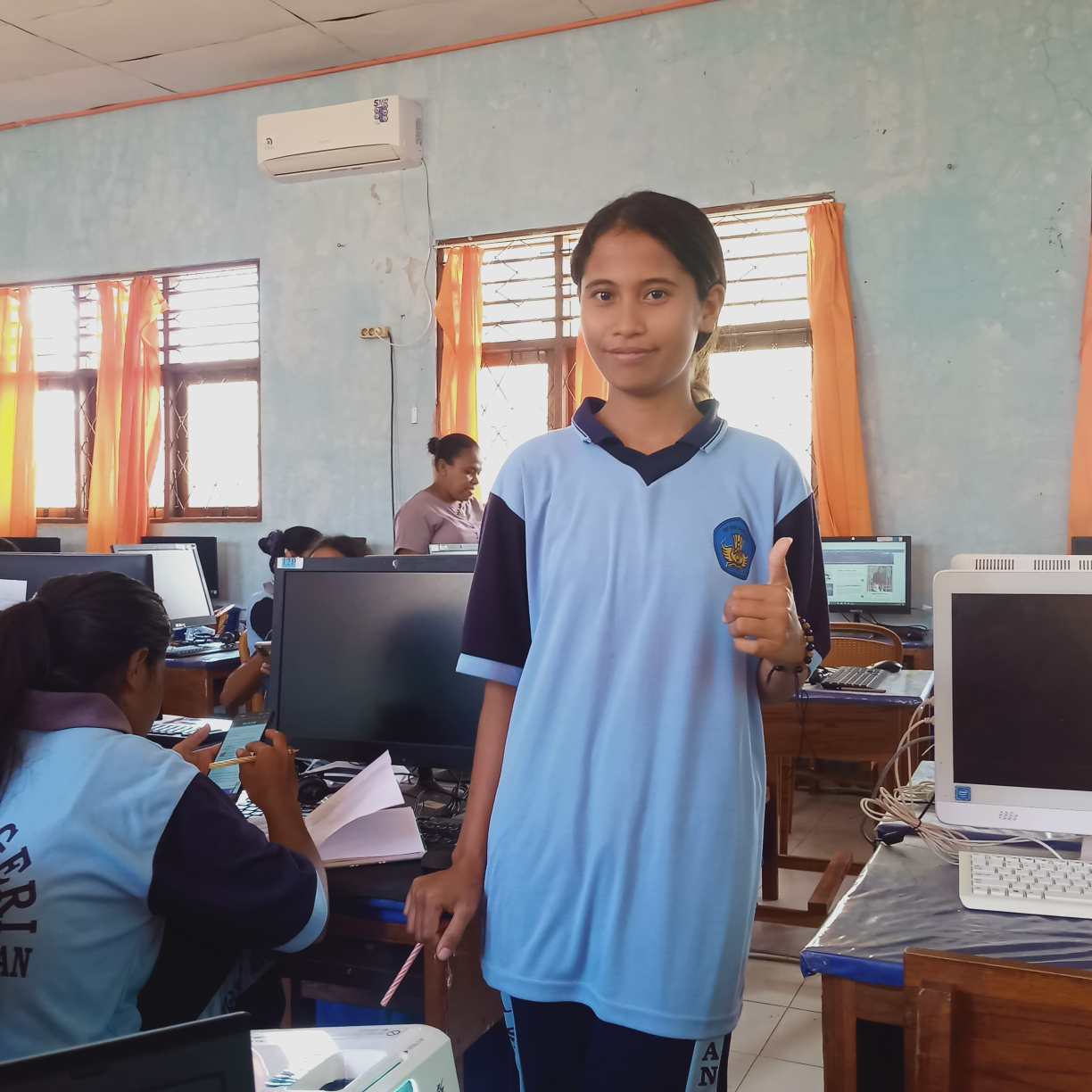 Reporter: Admin Pahlelo, Sinta tidak menyangka dirinya menjadi Juara 1 dalam lomba cipta, baca puisi pada perayaan bulan Bahasa SMAN 1 Semau Selatan. Padahal, satu min