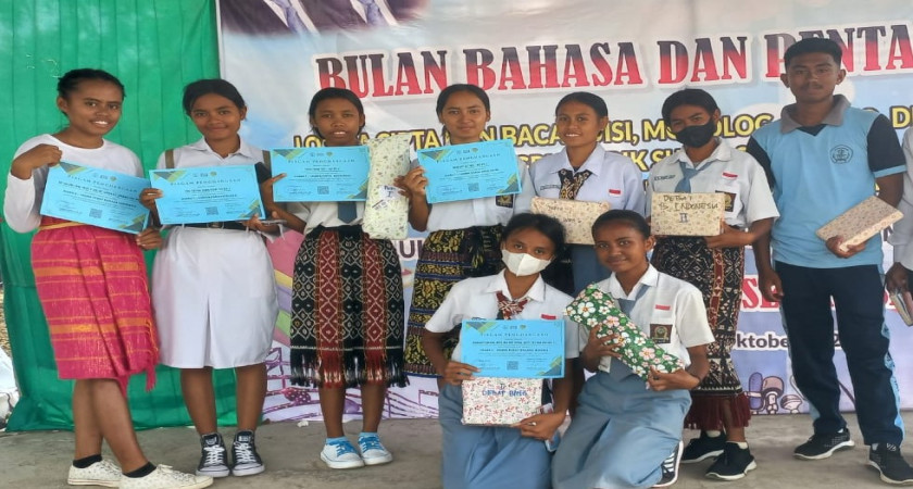 Reporter: Admin Pahlelo, Sinta tidak menyangka dirinya menjadi Juara 1 dalam lomba cipta, baca puisi pada perayaan bulan Bahasa SMAN 1 Semau Selatan. Padahal, satu min